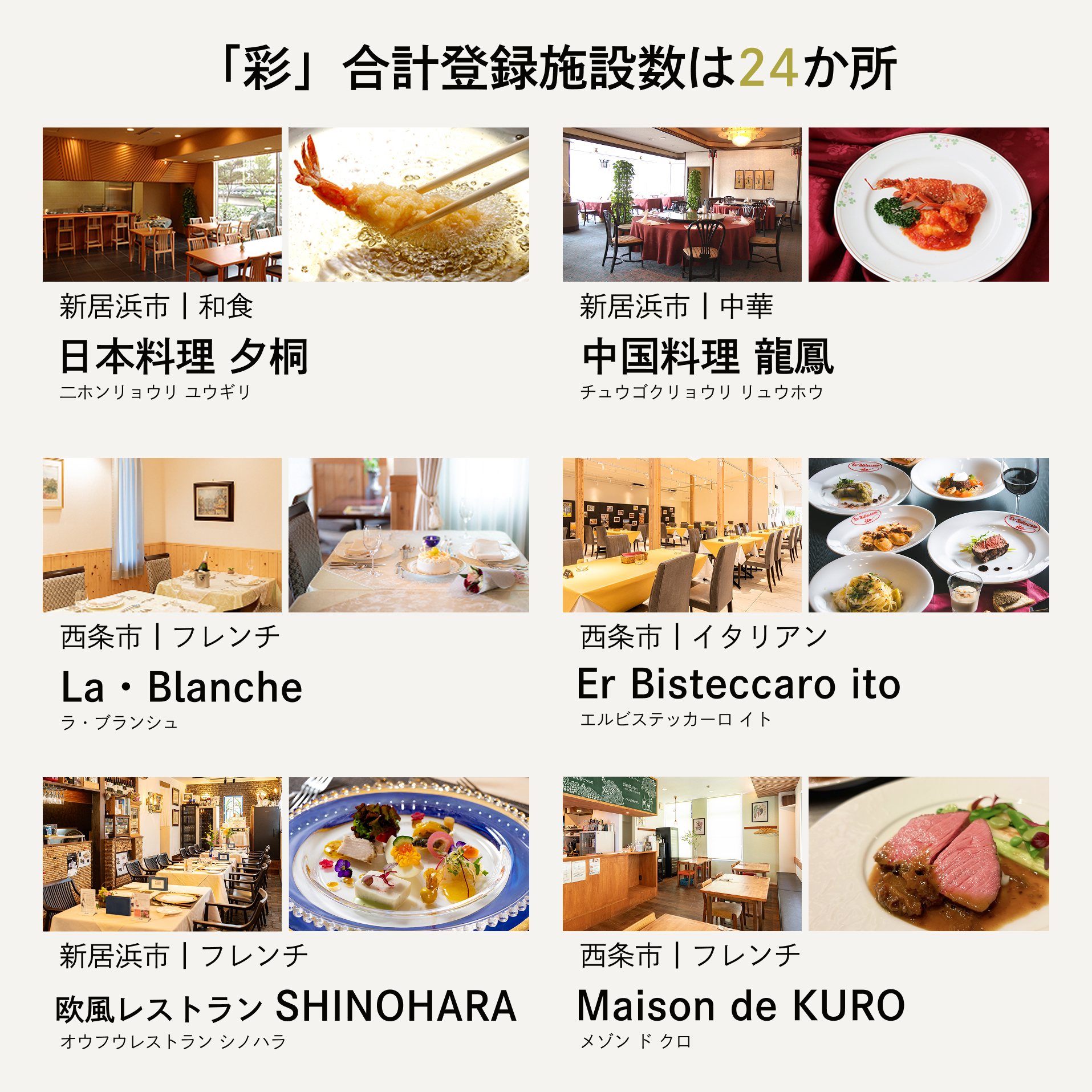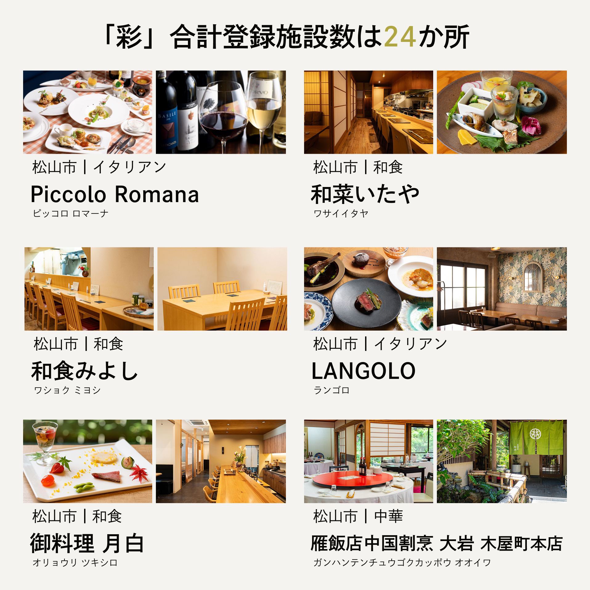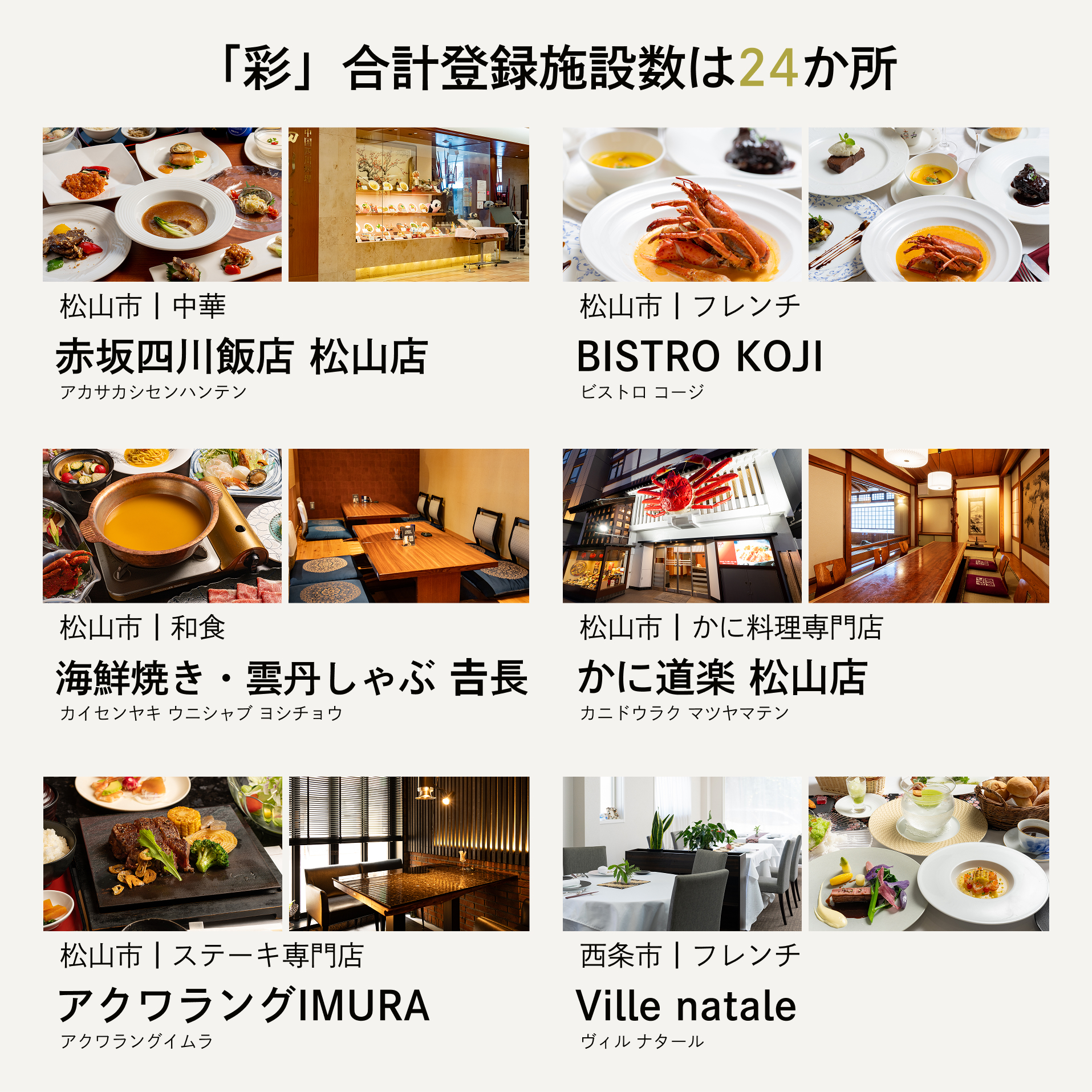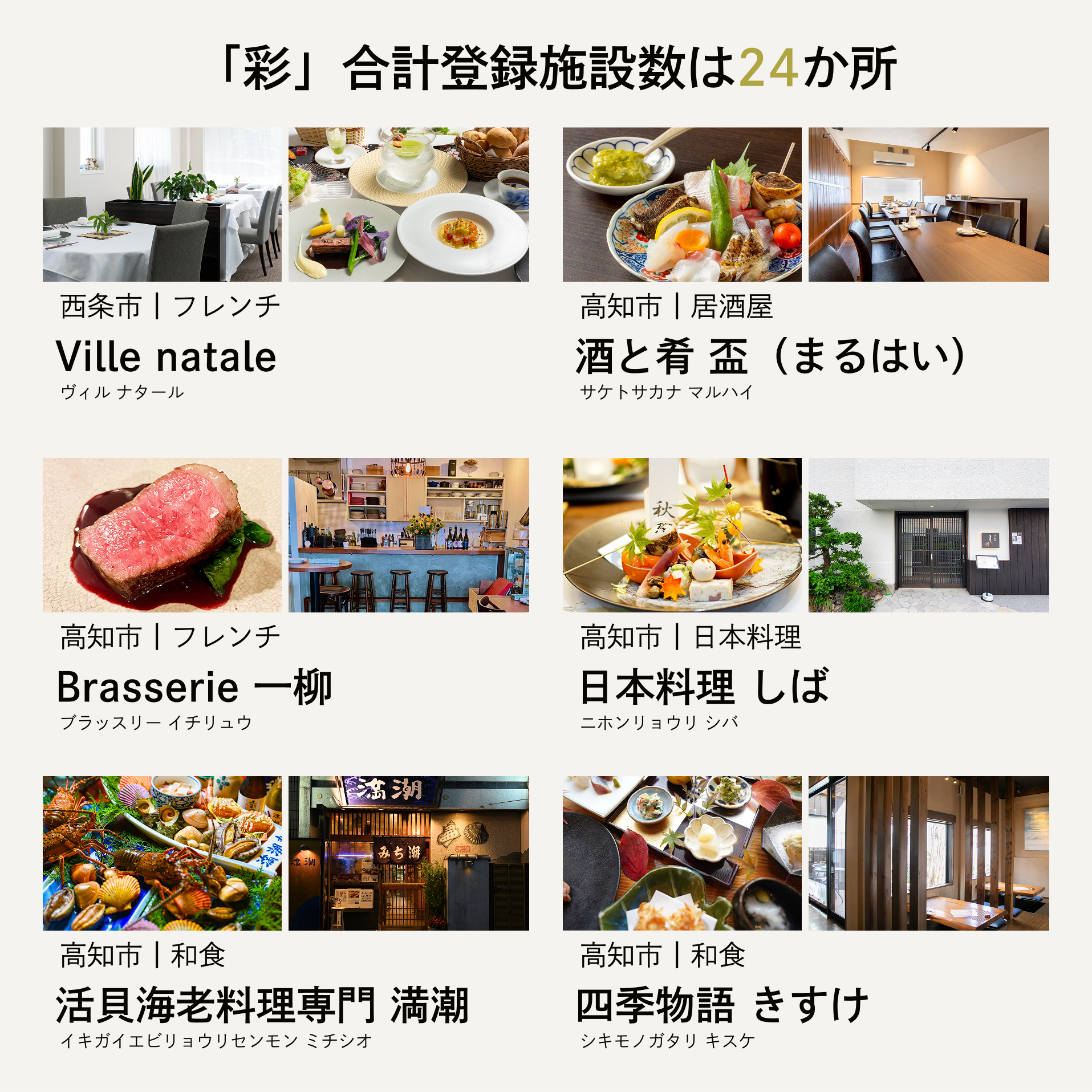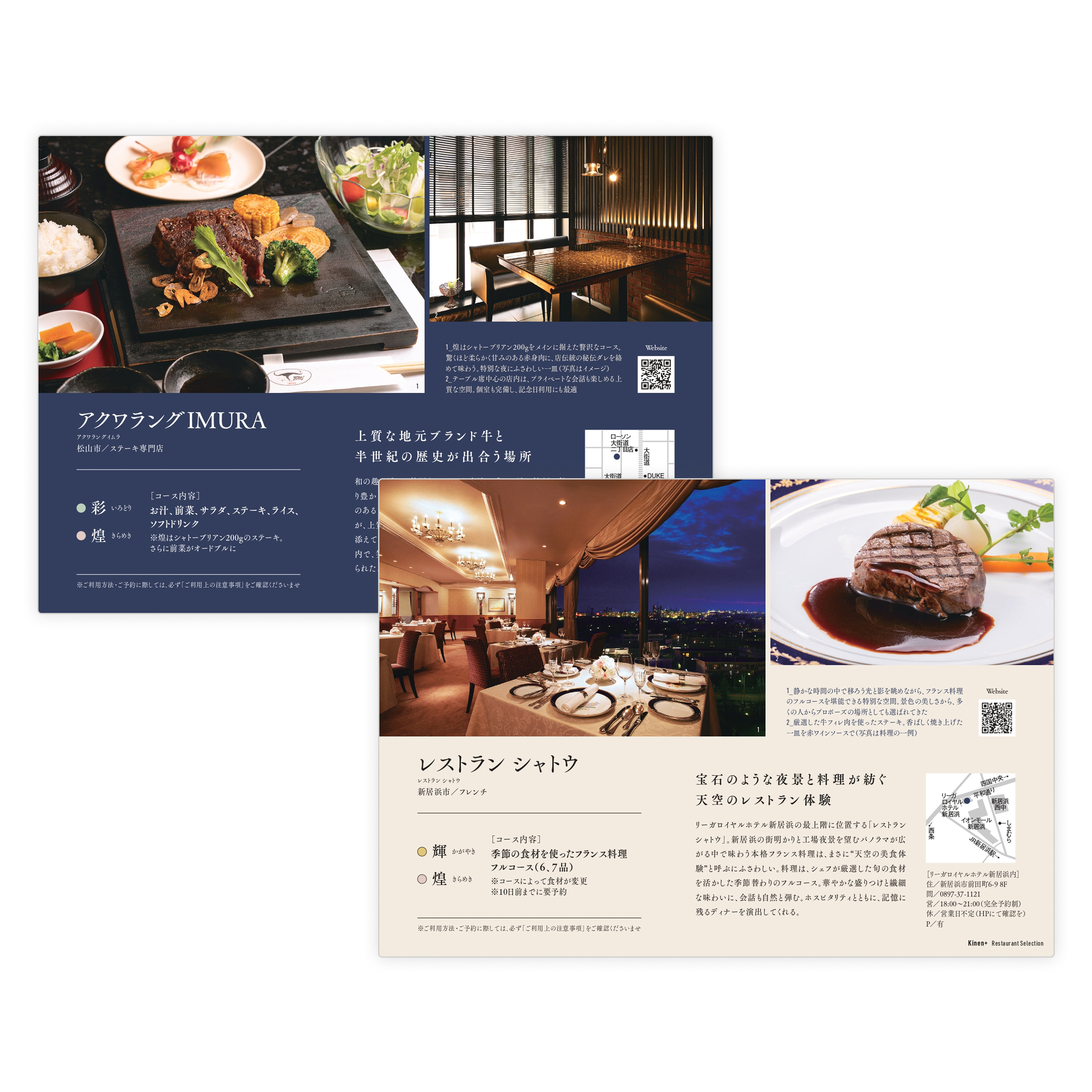 ・体験(食事)の予約は直接店舗へとご連絡いただく形となります。店舗により予約方法が異なる場合がございますので、同封の店舗カードをご確認ください。