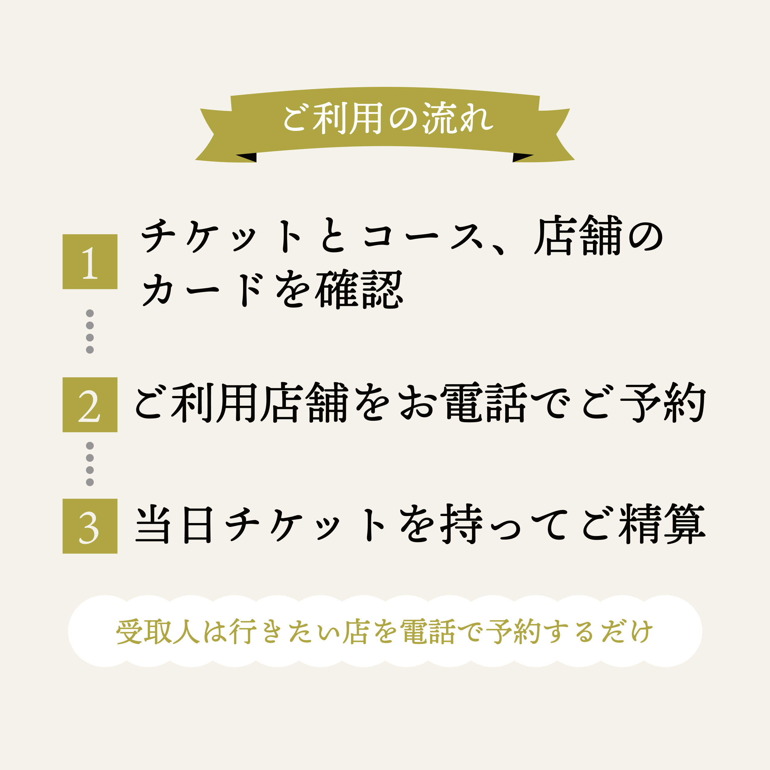 ・体験(食事)の予約は直接店舗へとご連絡いただく形となります。店舗により予約方法が異なる場合がございますので、同封の店舗カードをご確認ください。